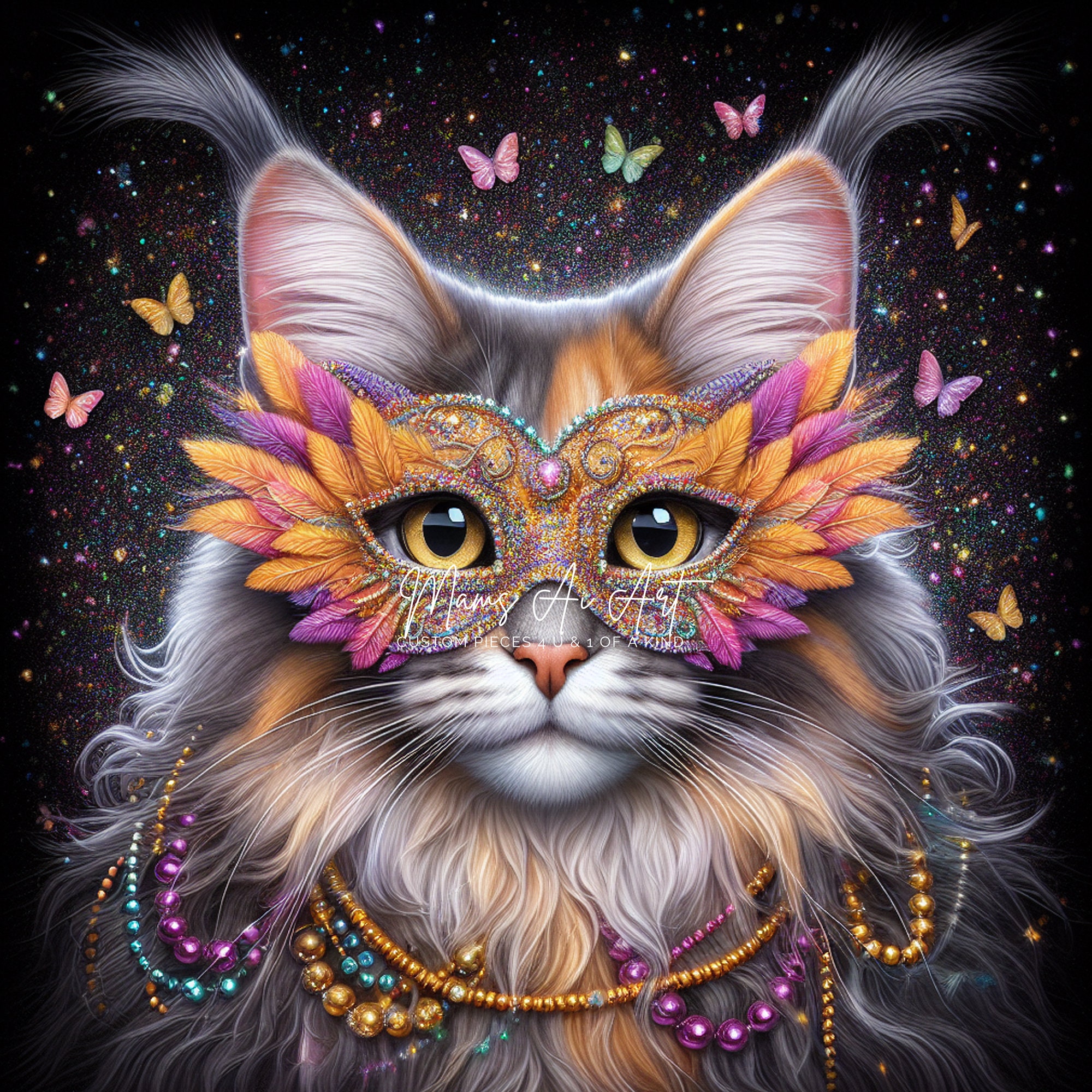 ~ MASKED MAINE COON~ AI Art by © Missy Means