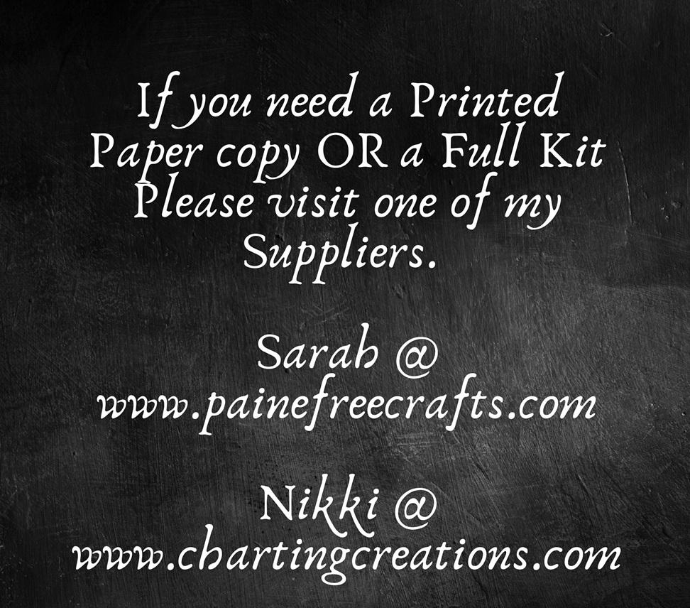 IF YOU NEED A FULL KIT OR PRINTED CHART OR FLOSS PACKS PLEASE VISIT MY SUPPLIERS:
