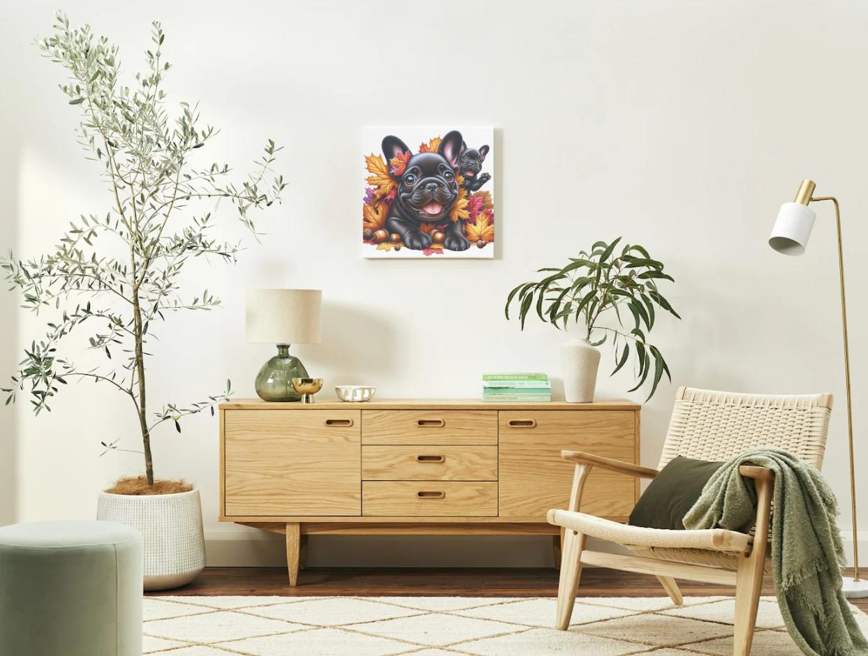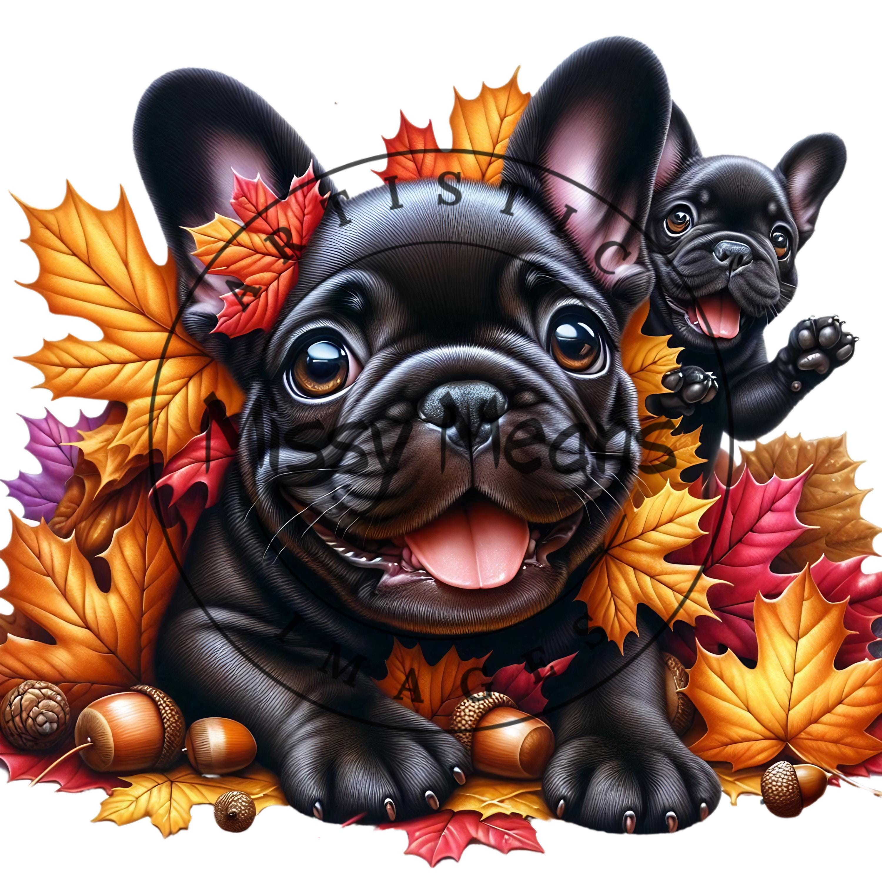 Black French Bulldog Autumn Leaves Print (PNG Digital Download)