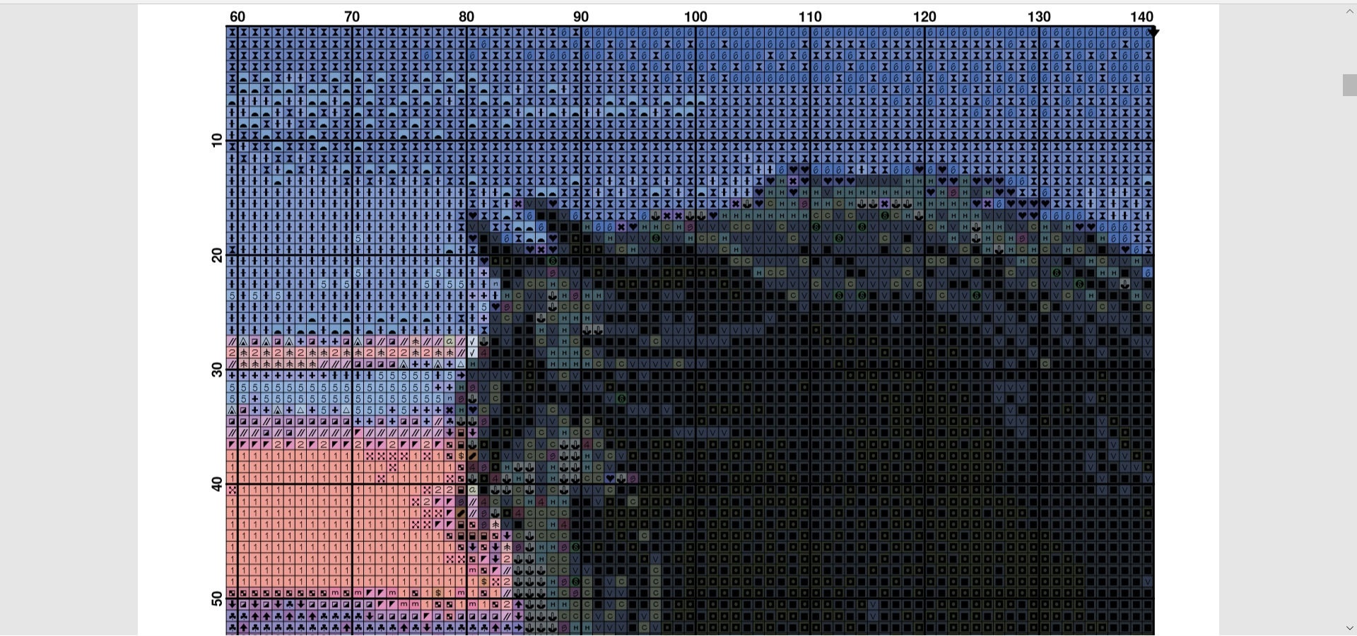 My pattern is made with Larger Print making the symbols easy to see. It is a PDF to be printed out by you. Nothing will be physically mailed to you.