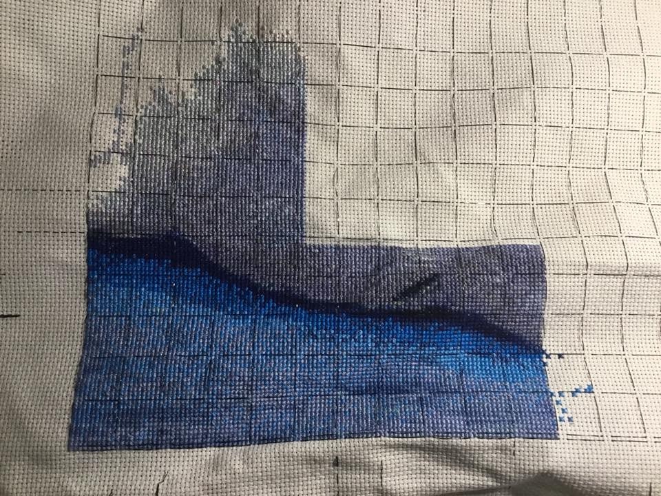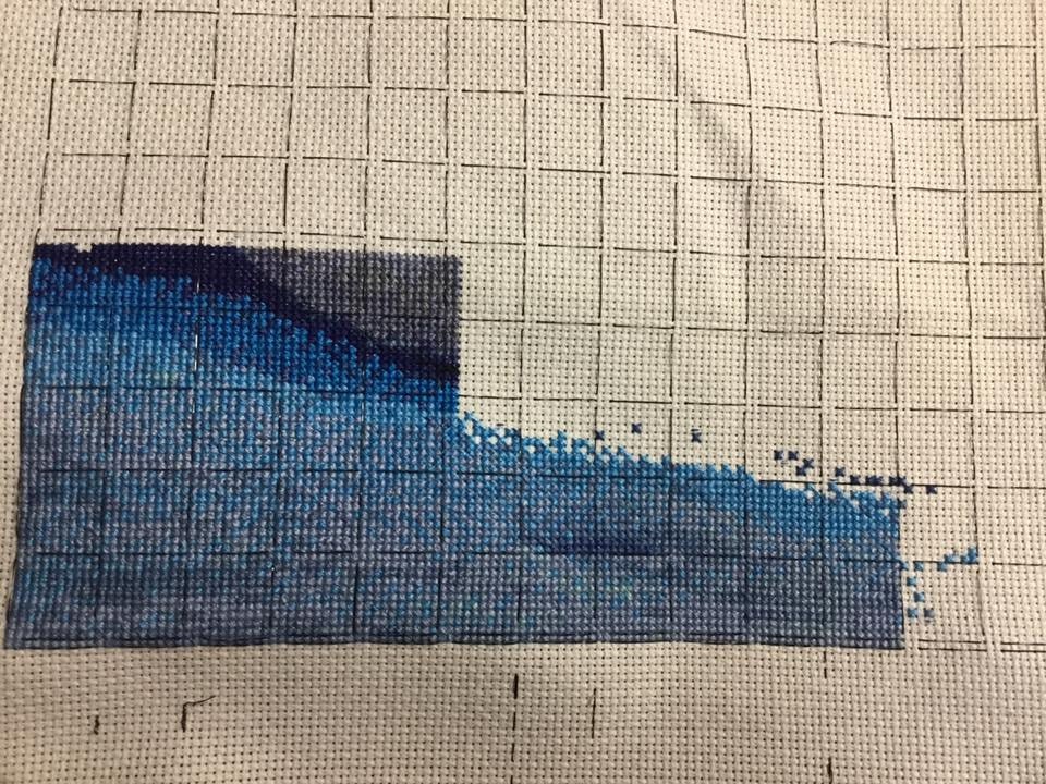 Model is being stitched on 18 count Aida by Ashlyn Thomas.